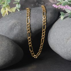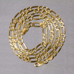 This lite Figaro chain comes in 10k yellow gold and has a width of 4.70 millimeters.