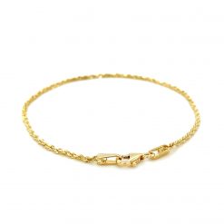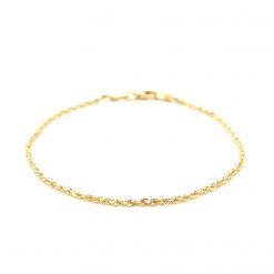 This solid diamond cut rope bracelet comes in 10k yellow gold and has a width of 1.5 millimeters.