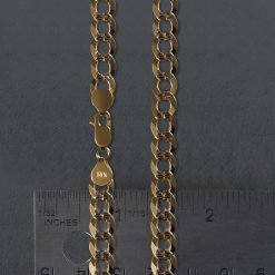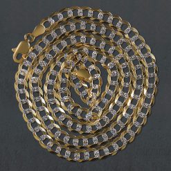 This pave curb chain comes in 14k two tone gold and has a width of 4.60 millimeters.
