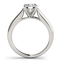 An elegant and straightforward cathedral designed round prong set solitaire ring exuding style and sophistication made of 14k white gold.