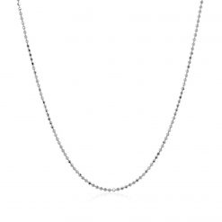 This diamond cut bead chain comes in 14k white gold and has a width of 0.90 millimeters.