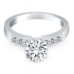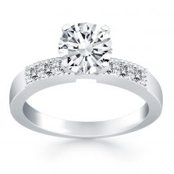 Six sparkling princess cut diamonds enliven the band of this stylish 14k white gold engagement ring mounting. The accent diamonds are bordered with an attractive milgrain edge. The center setting can be customized to accept a wide range of center stone sizes and shapes. The center stone and setting are not included.