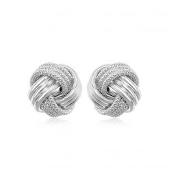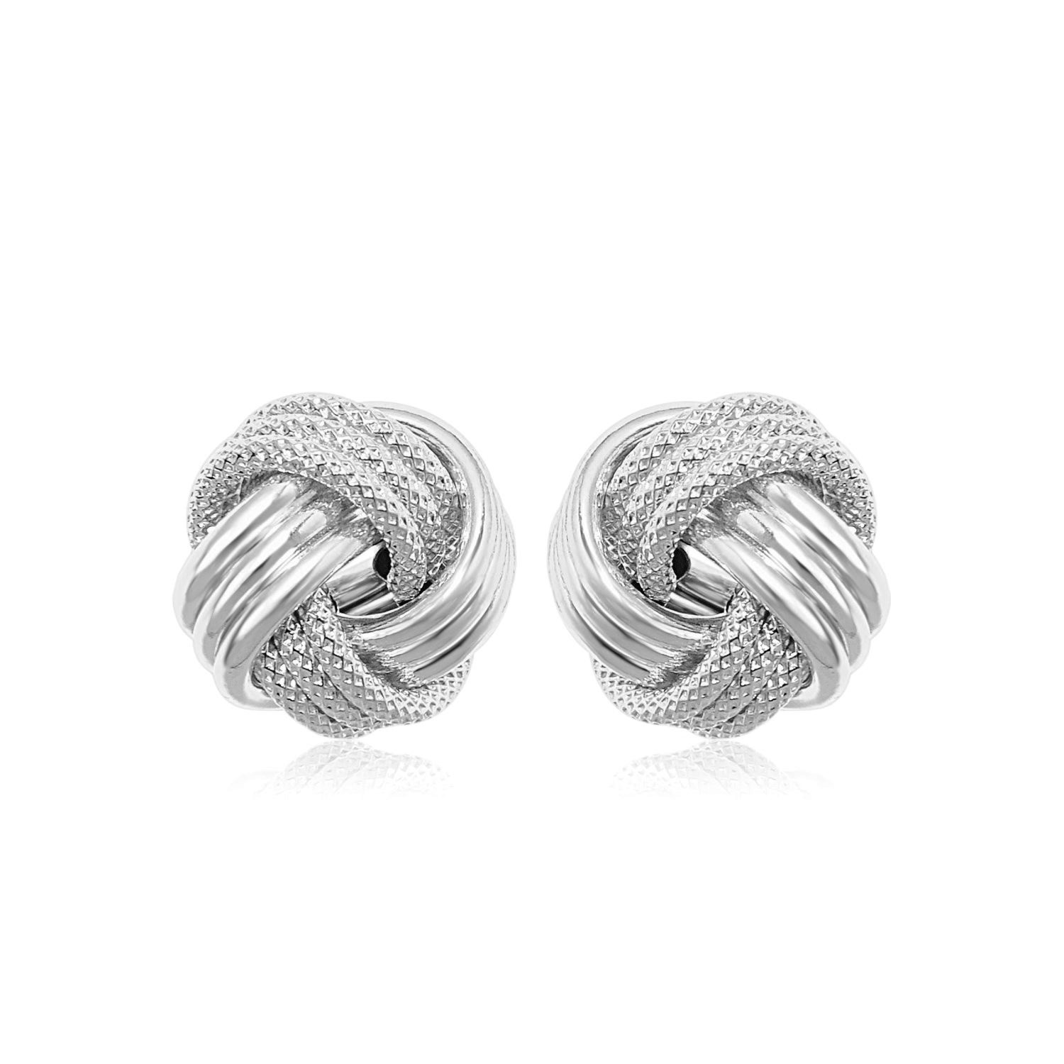 14k White Gold Love Knot with Ridge Texture Earrings