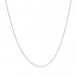 This oval cable link chain comes in 14k white gold and has a width of 0.85 millimeters.