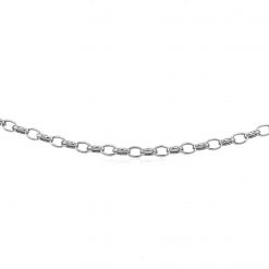 This oval rolo chain comes in 14k white gold and has a width of 3.2 millimeters.