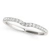 Exuding elegance and style, this round pave setting diamond wedding band features a slight curved style. Made of 14k white gold.