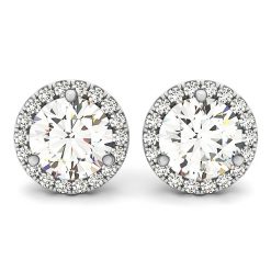 14k White Gold Round Prong Halo Style Earrings (1 cttw)