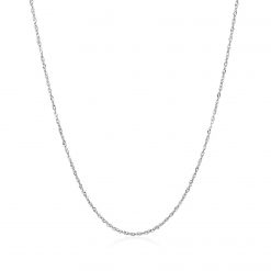 This Singapore chain comes in 14k white gold and has a width of 0.81 millimeters.