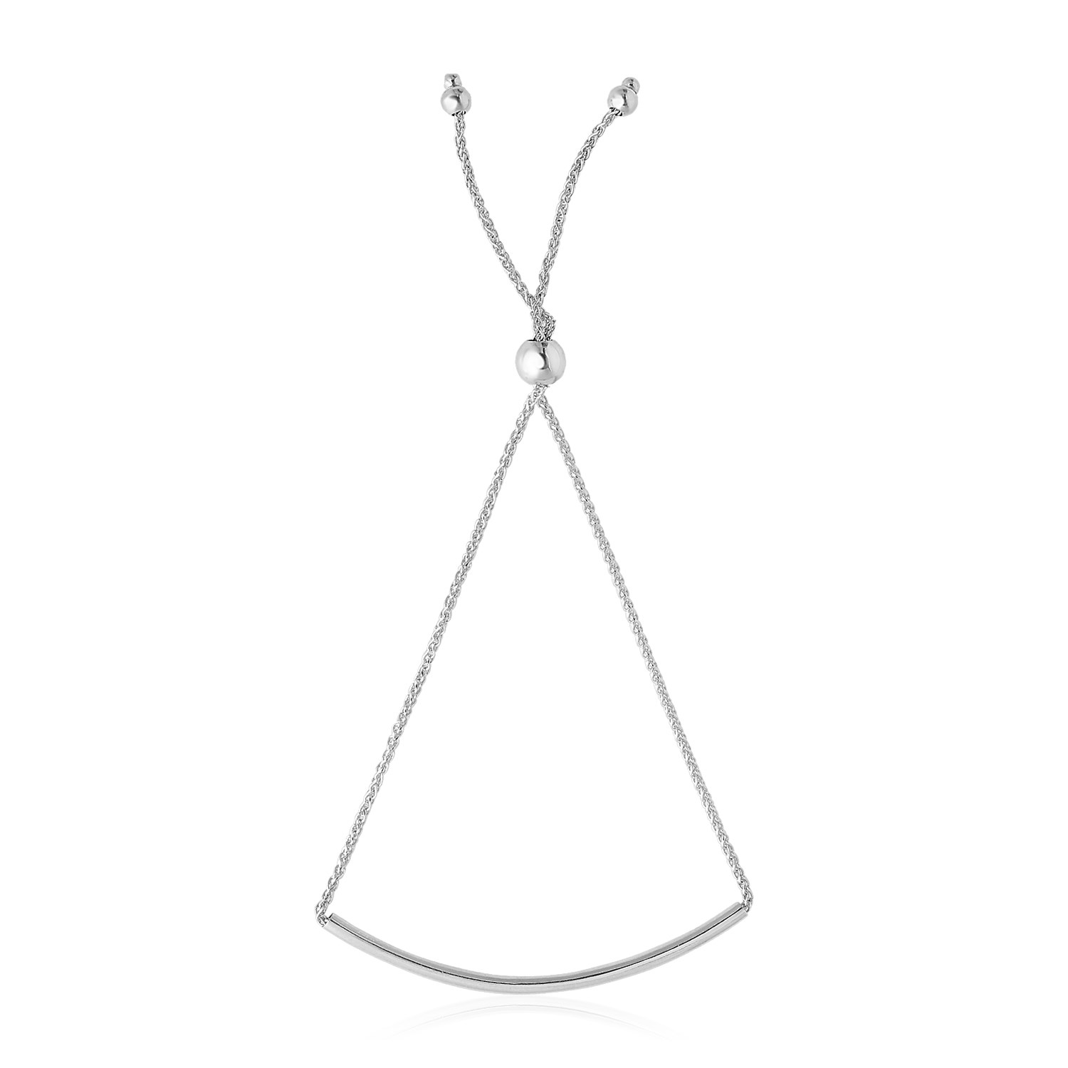A beautiful chain bracelet featuring a curved bar section with polished finishing. Made of 14k white gold, this secured with an adjustable drawstring lariat closure.