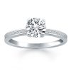 Tapered baguette diamond accents enliven the slender band of this 14k white gold engagement ring mounting. Highlighting the center stone, the bar set baguettes delight the eye with subtle flash. The center setting can be customized to accept a wide range of center stone sizes and shapes. The center stone and setting are not included.