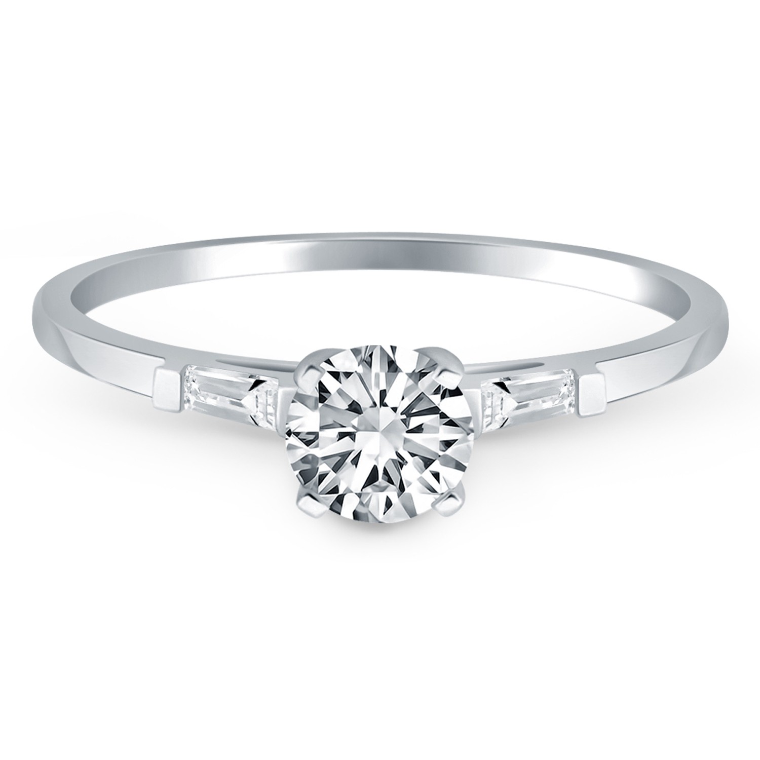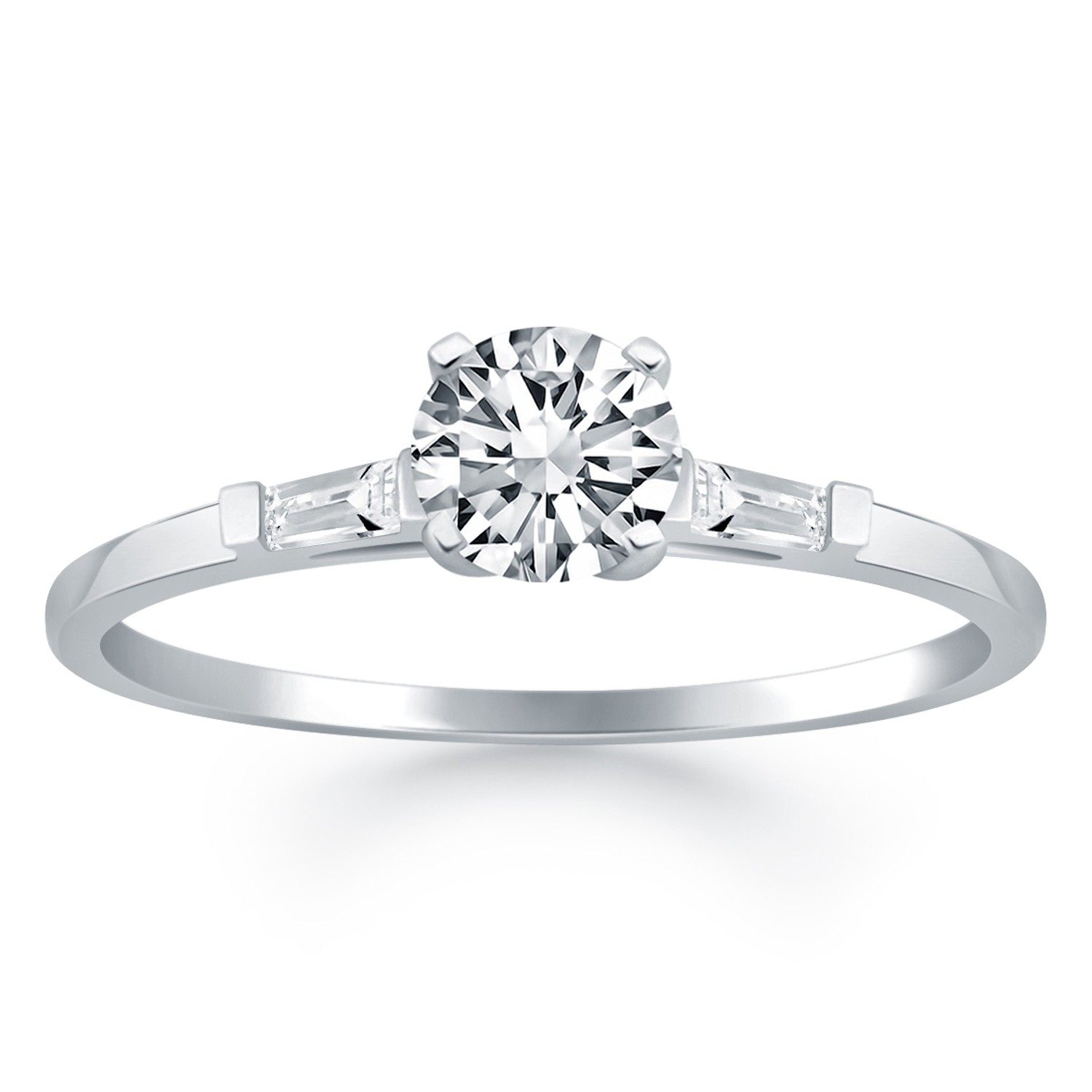 14k White Gold Tapered Baguette Diamond Engagement Ring Mounting