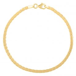 Elegant 14k yellow gold bracelet showcasing a mini cube design and a pear shaped lobster clasp. Bracelet measuring 7 inches long.