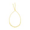 Beautifully modern paperclip chain adorns this unique and versatile 14K yellow gold adjustable friendship bracelet. Bracelet is 9 1/4 inches long, 1mm wide, and adjusts with a slide clasp. Paperclip chain element measures 63.6×3.2mm.