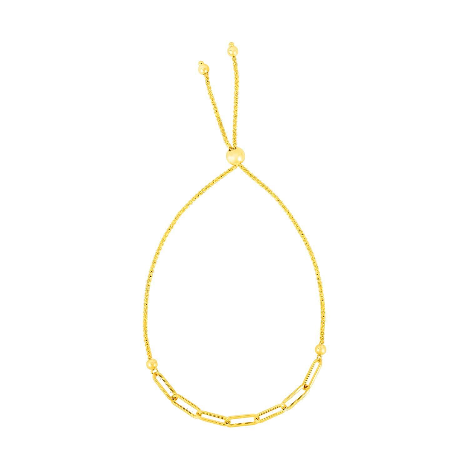 14K Yellow Gold Adjustable Bracelet with Paperclip Chain
