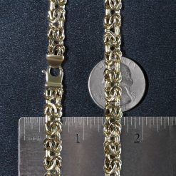 Exuding alluring style, this necklace features a byzantine chain design. A beautiful 14k yellow gold piece measuring 18 inches and 20 inches and secured with a lobster clasp.