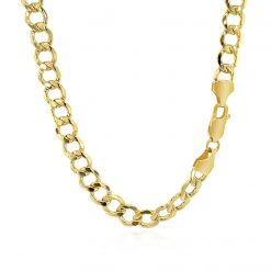 This curb chain comes in 14k yellow gold and has a width of 6.2 millimeters.