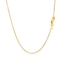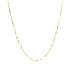 This diamond cut cable link chain comes in 14k yellow gold and has a width of 1.10 millimeters.