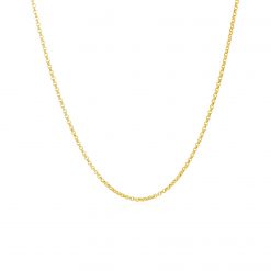 This diamond cut rolo chain comes in 14k yellow gold and has a width of 1.10 millimeters.