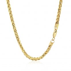 This diamond cut round franco chain comes in 14k yellow gold and has a width of 3.20 millimeters.