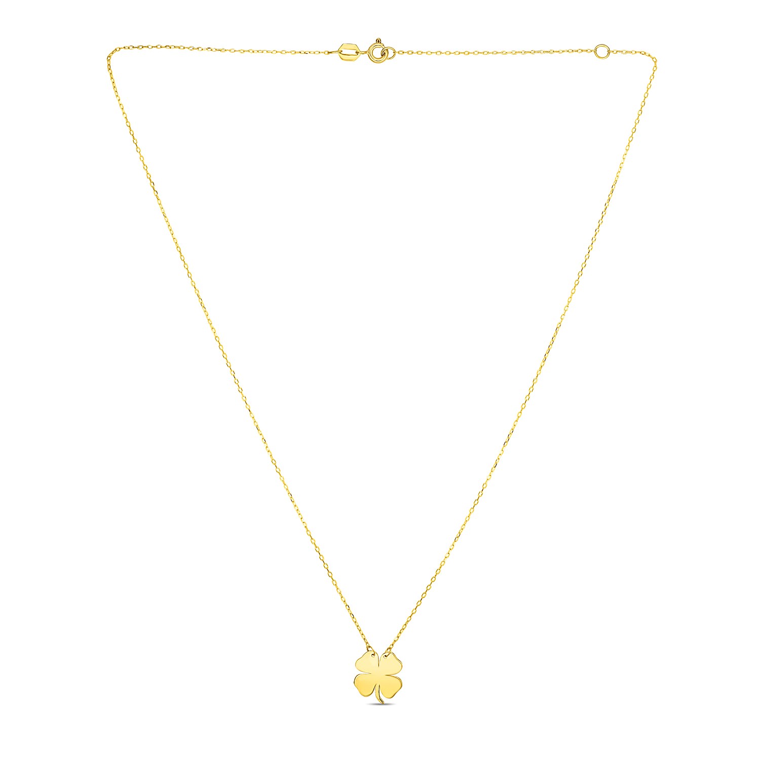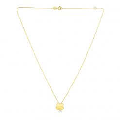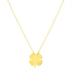 Luck and good fortune will follow you when you wear this breathtakingly polished 14K yellow gold four leaf clover necklace. Necklace is 18 inches long.