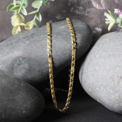 This heart chain comes in 14k yellow gold and has a width of 3.00 millimeters.