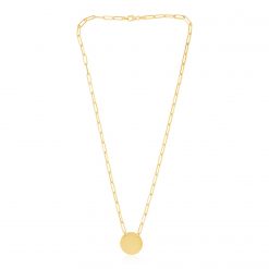 This Circle Disc Paperclip Link necklace is great cross between bold & delicate. Great for layering or wearing independently, a perfect addition to add to anyone’s collection. Crafted in 14k yellow gold with a high polish finish & a lobster clasp closure. Available in an 18 inches length.