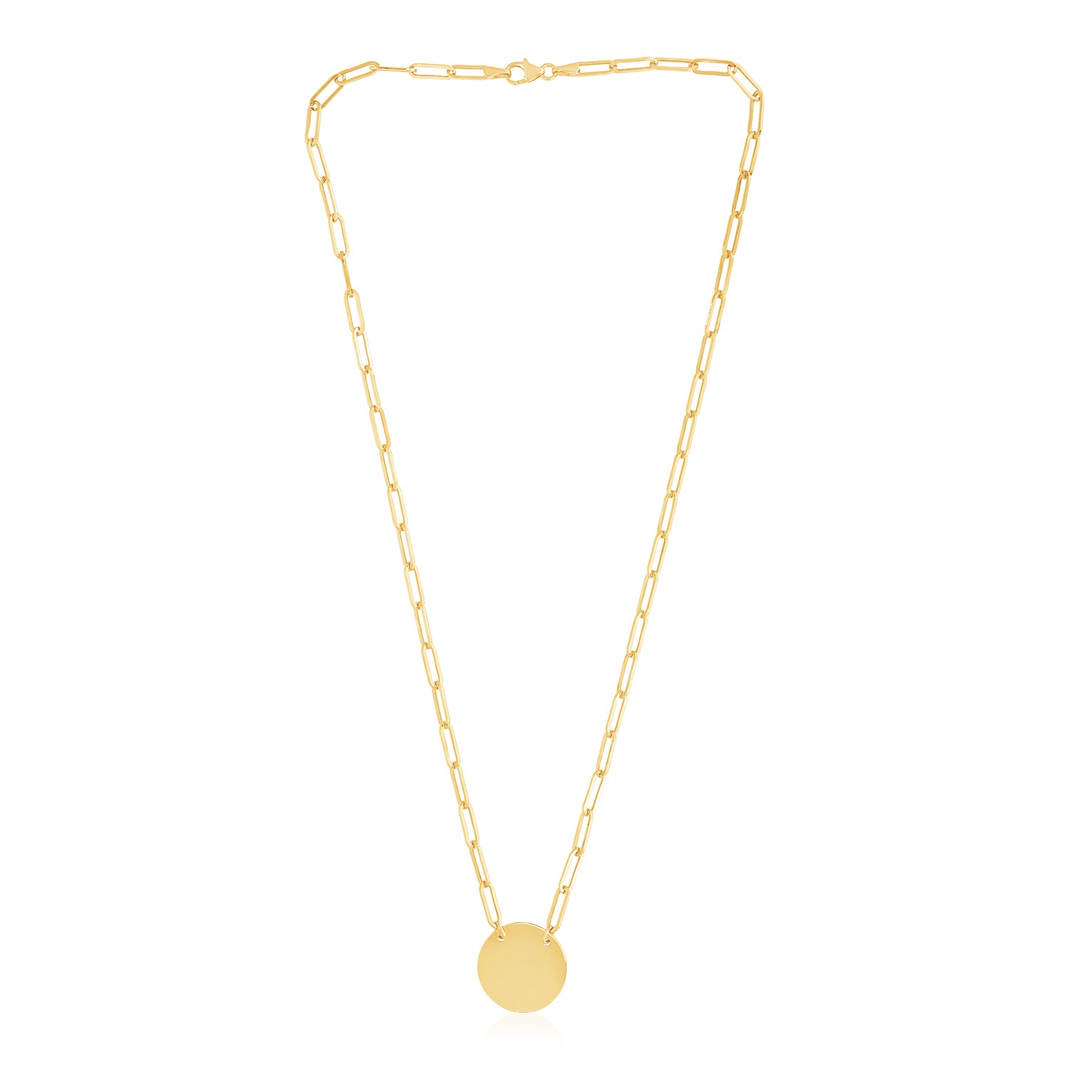 14k Yellow Gold High Polish Circle Disc Paperclip Link Necklace