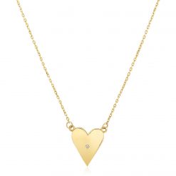 This Elongated Heart necklace is simple and sweet, at the center sits a dainty bright diamond. Truly a classy design that will catch your eye. Crafted in 14k yellow gold with a high polish finish & a lobster clasp closure. Available in an 18 inches length.