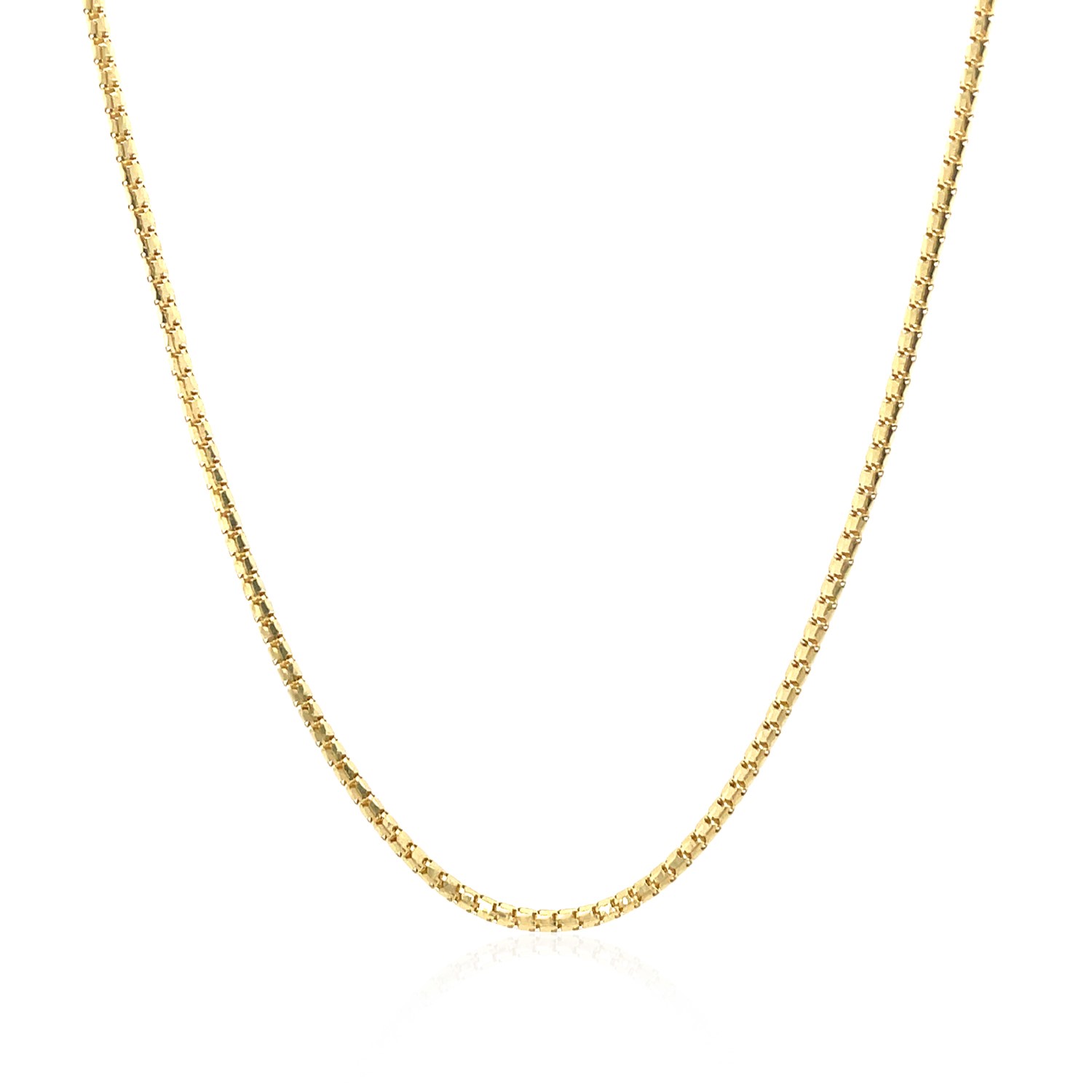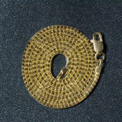This ice chain comes in 14k yellow gold and has a width of 1.3 millimeters.