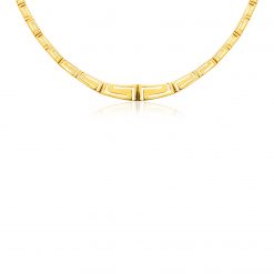 14K Yellow Gold Necklace with Graduated Greek Meander Motif Links