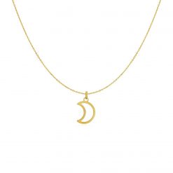 Wear the beauty of the night when you adorn yourself with a lovely moon necklace in 14k yellow gold. Necklace is 18 inches long and closes with a spring ring clasp.