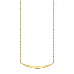 The modern geometry of a delicate polished curve highlights a gorgeous 14k yellow gold necklace. Necklace is 18 inches long and closes with a lobster clasp.