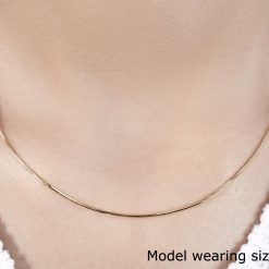 This octagonal shiny snake chain comes in 14k yellow gold and has a width of 0.85 millimeters.