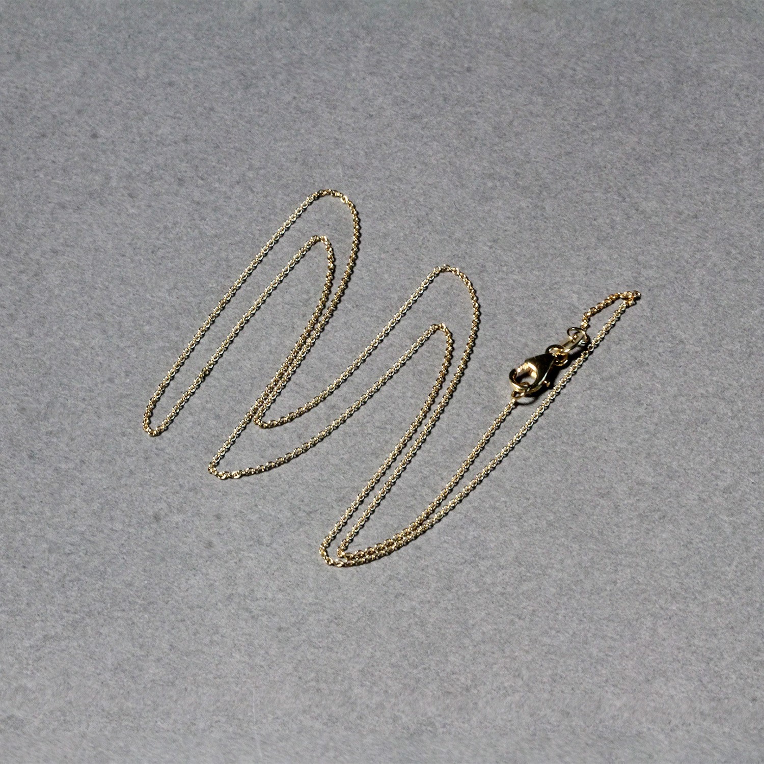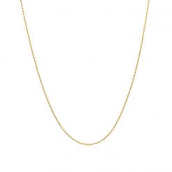 This oval cable link chain comes in 14k yellow gold and has a width of 0.85 millimeters.