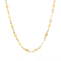 Lovely polished diamond shapes of stunning 14K yellow gold are linked together in a beautiful parade to create this luxurious chain. Chain as 3.0mm wide and closes with a lobster clasp.