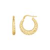 Stunning diamond cut texture detailing highlights the charming style of these puffed heart post earrings. Made of 14k yellow tone gold, these secured with push backs.