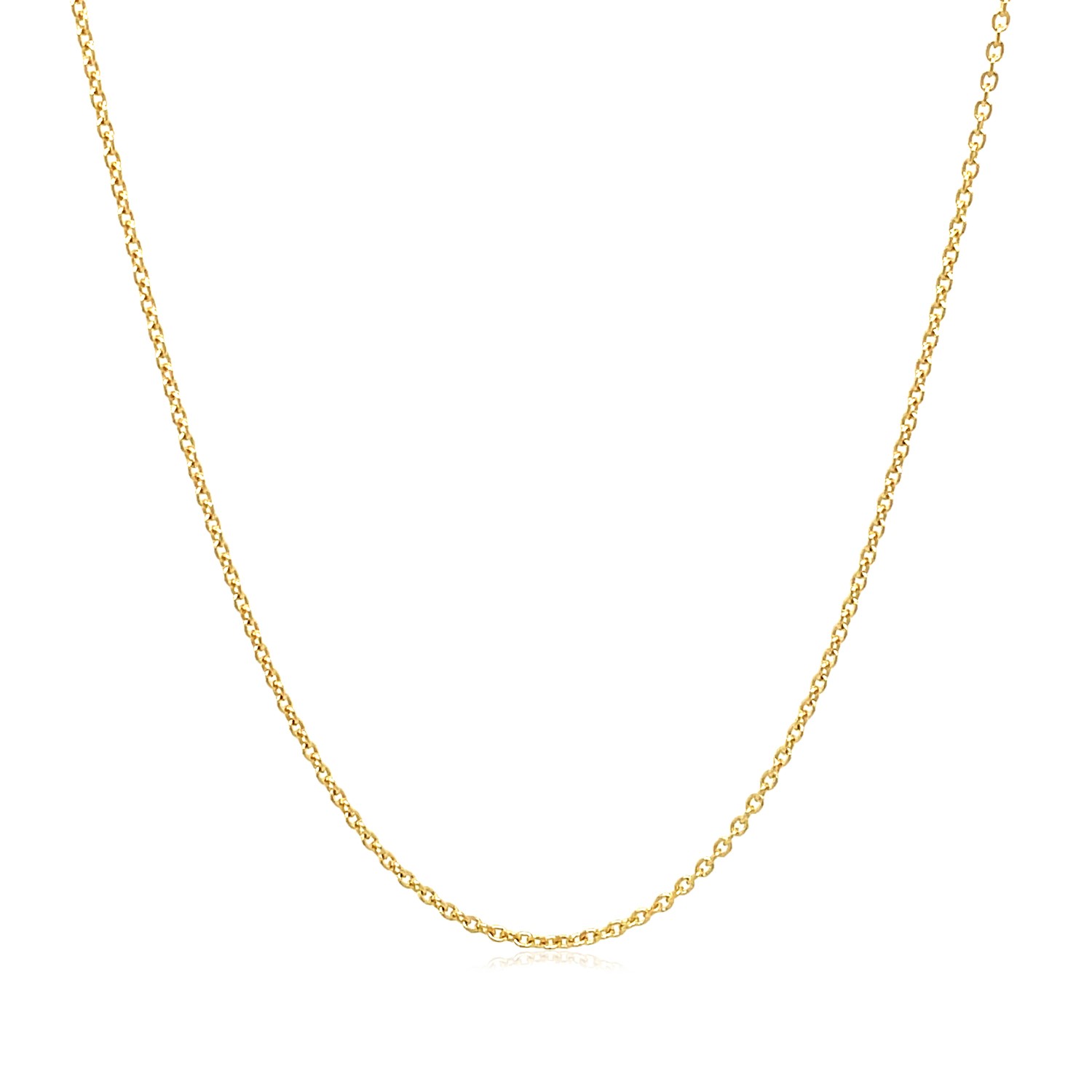 This round cable link chain comes in 14k yellow gold and has a width of 1.10 millimeters.