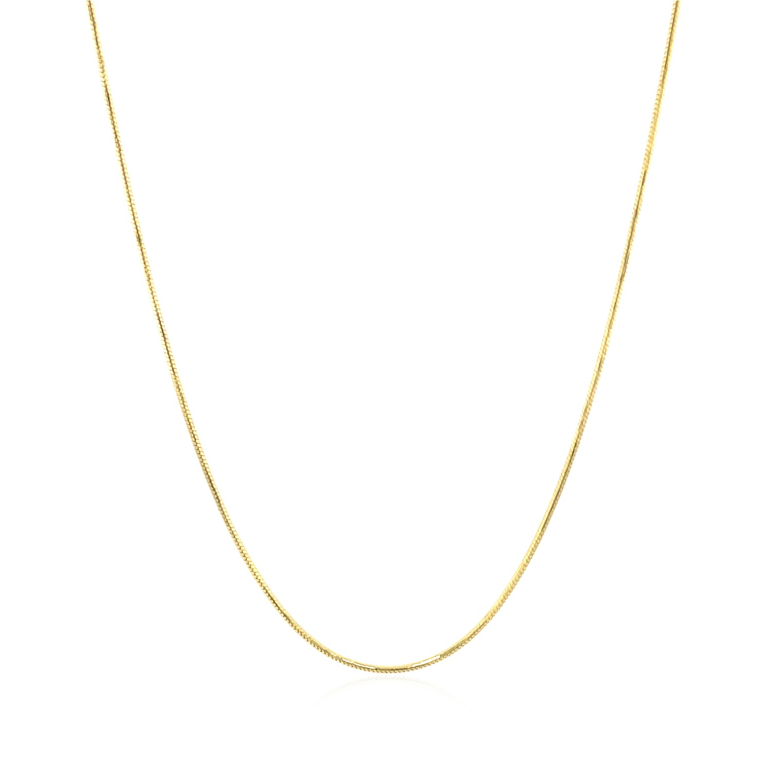 This round snake chain comes in 14k yellow gold and has a width of 0.70 millimeters.