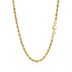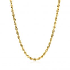 This solid diamond cut rope chain comes in 14k yellow gold and has a width of 3.0 millimeters.