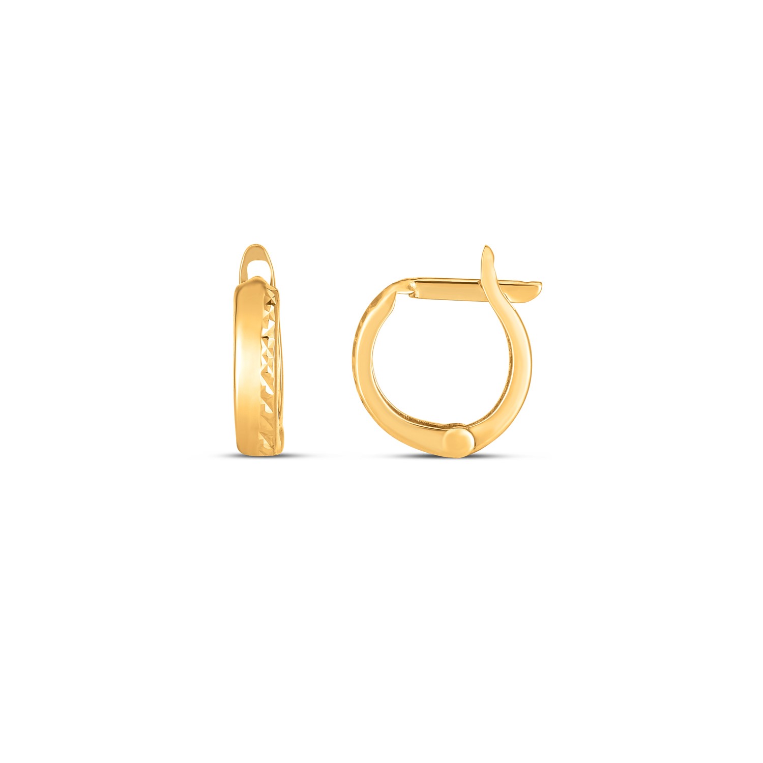 These Textured Huggie hoop earrings are the perfect elegant design. Crafted in 14k yellow gold with a high polish finish & a snap back closure.
