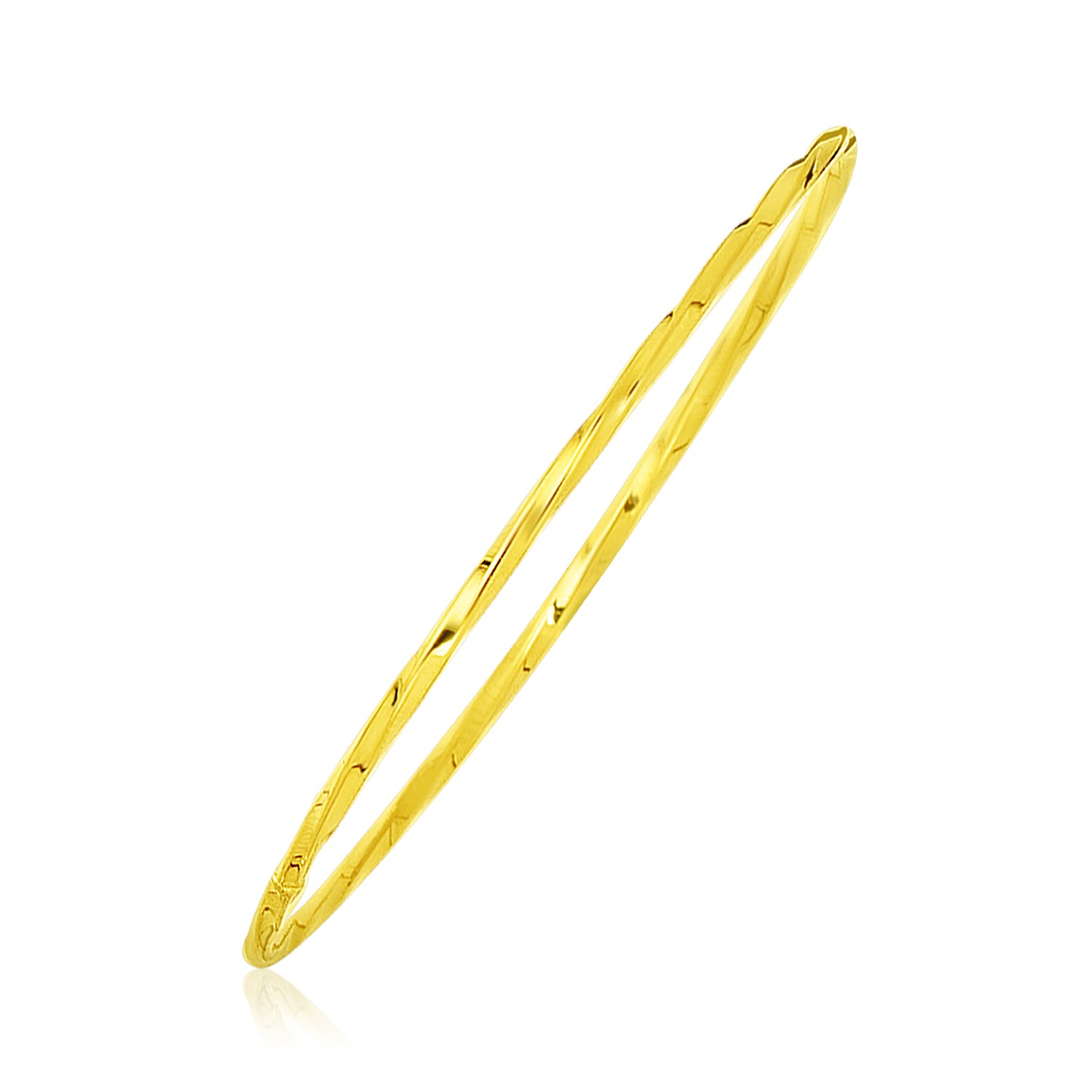 14k Yellow Gold Thin Twisted Shiny Bangle (2.50 mm)