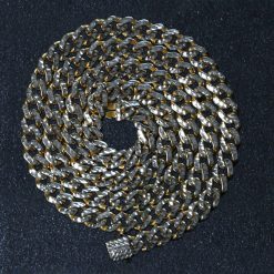 14k Yellow Gold White Pave High Polish Modern Lite Miami Cuban Chain (6.50 mm)