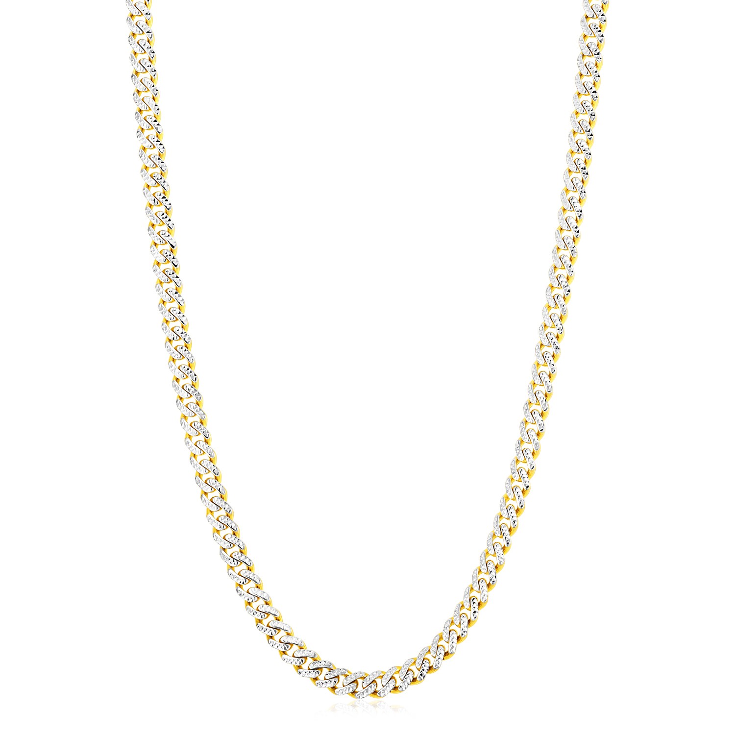 14k Yellow Gold White Pave High Polish Modern Lite Miami Cuban Chain (6.5mm)