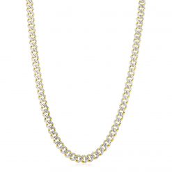 14k Yellow Gold White Pave High Polish Modern Lite Miami Cuban Chain (8.00 mm)