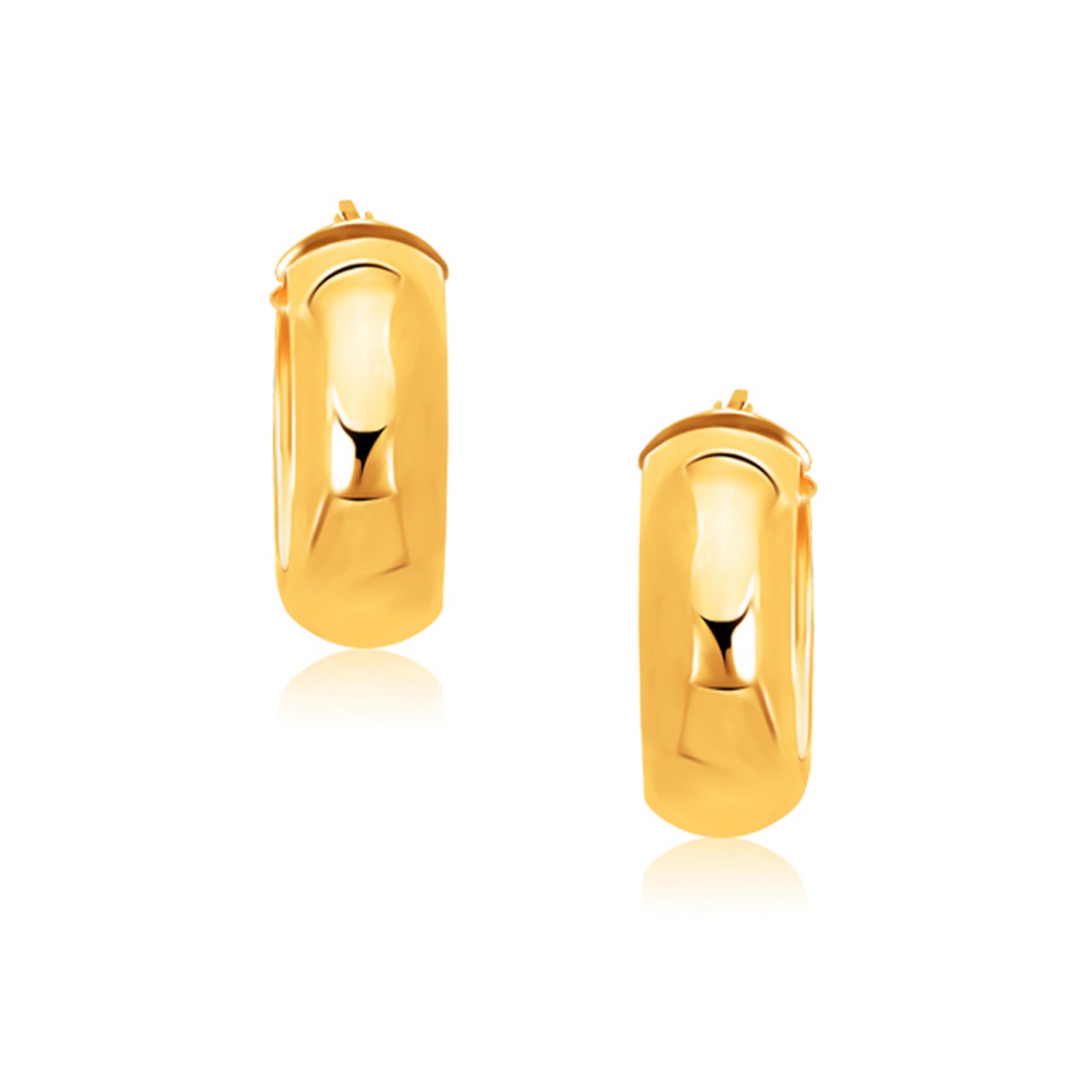14k Yellow Gold Wide Medium Hoop Earrings with Snap Lock