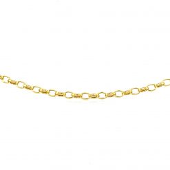 This oval rolo bracelet comes in 14k yellow gold and has a width of 3.2 millimeters. Secured with a lobster clasp.