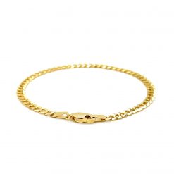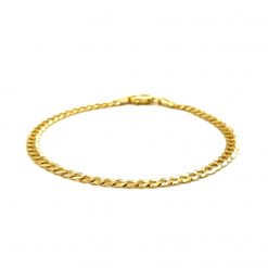 This solid curb bracelet comes in 14k yellow gold and has a width of 3.6 millimeters. Secured with a lobster clasp.