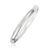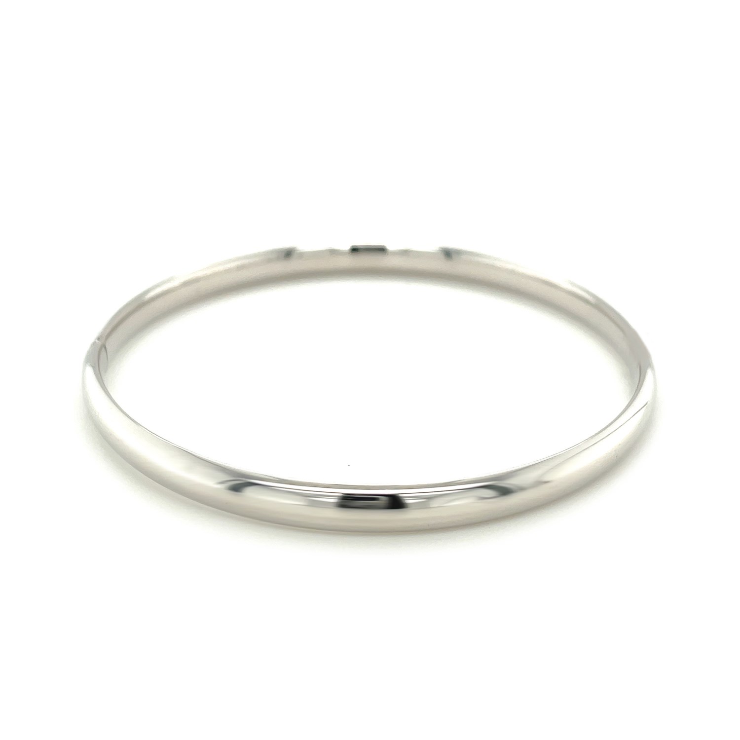 A classic high polish bangle crafted in 14k white gold with a hidden clasp.