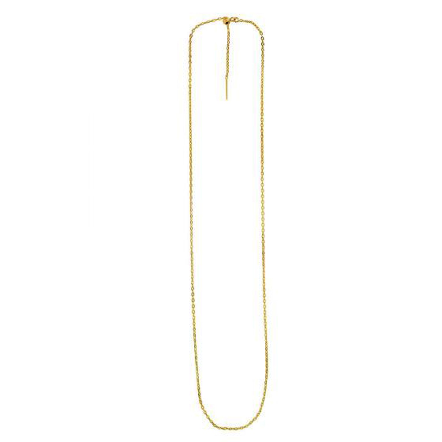 Endless adjustable cable chain crafted in 14k yellow gold measuring 1.7 millimeters in width. Adjustable up to 22 inches in length and secured with a Draw String clasp.