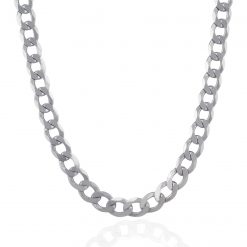 This classic rhodium plated chain is crafted in gleaming sterling silver and has a width of 11.6 millimeters featuring a curb chain design; it secured with a lobster clasp.